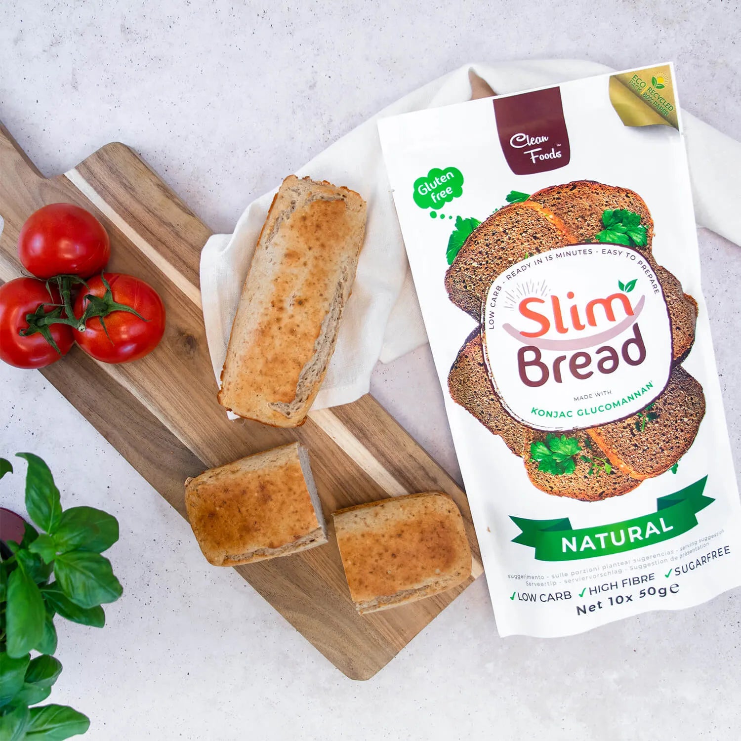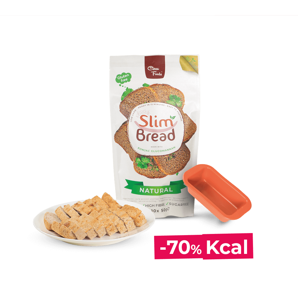 SlimBread provides 70% fewer calories than conventional bread. It provides vegetable proteins and fiber. It contains no gluten, no sugar and no wheat flour. We use glucomannan fiber in our bread: a substance that helps you lose weight on a low-calorie diet. It also helps you to lower your cholesterol levels if you consume 4 g per day.