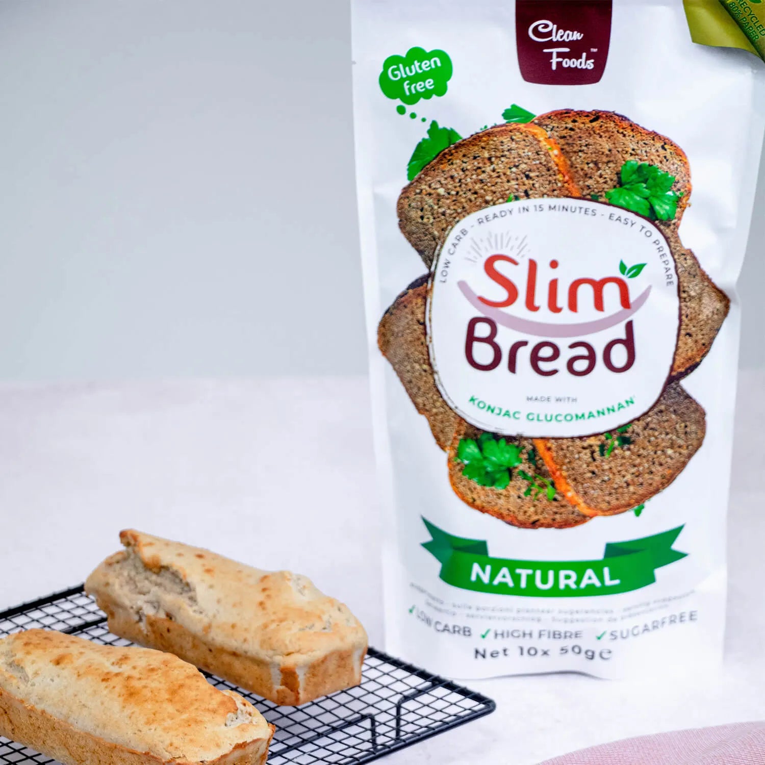 Preparation: Preheat the oven to 200 degrees and in the meantime mix 50 ml of water with the SlimBread mixture. Pour the mixture into a CleanFoods bread tin and place in the oven for 15 minutes.